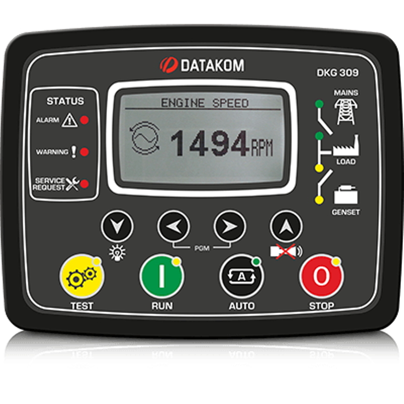 DKG-309, tekli veya karşılıklı yedeklemeli otomatik jeneratör kumanda panolarında ihtiyaç duyulan tüm fonksiyonları içeren mikroişlemci kontrollü dijital bir cihazdır.
